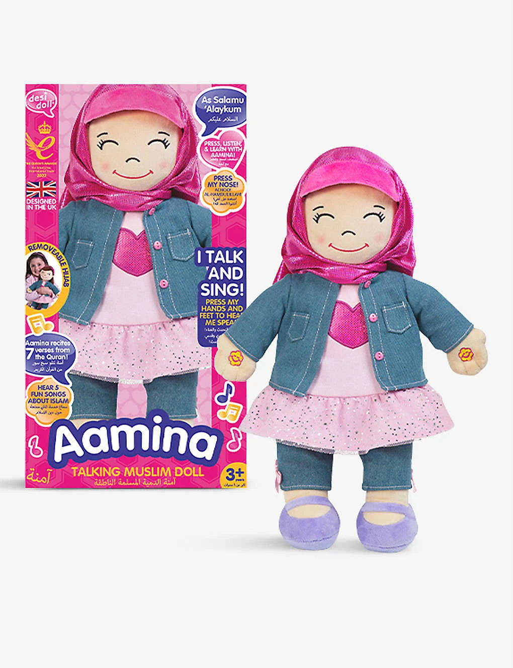 - Features: speaks English and Arabic, recites Surahs, says Islamic phrases