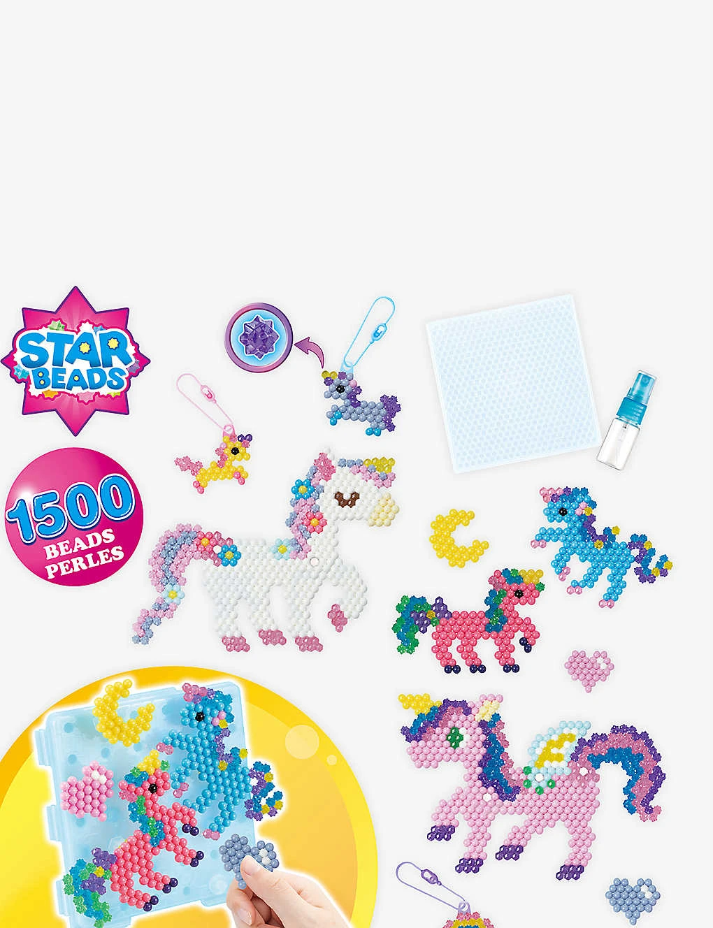 - Includes: 1500x beads of 24 colours (10x solids, 5x jewels, 9x stars), 1x layout tray, 1x spray bottle, 1x display, 12x design pegs, 3x key chain accessories, 3x colour straps, 1x template sheet, 1x manual
