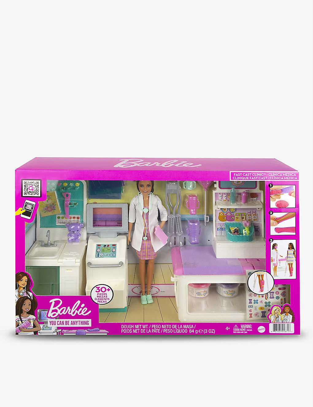 - Includes: One Barbie doll, interchangeable outfits, stethoscope, clipboard and different coloured casts