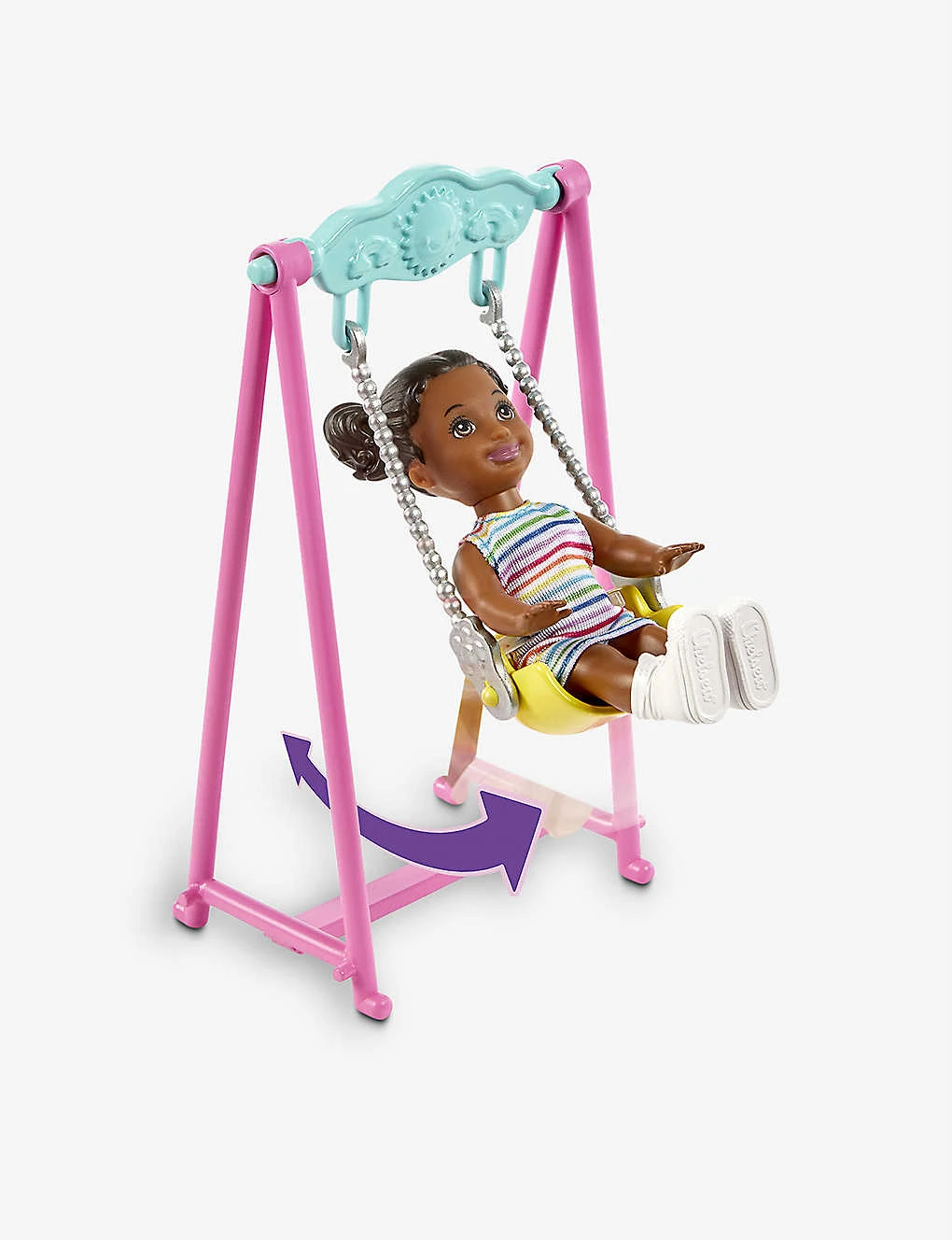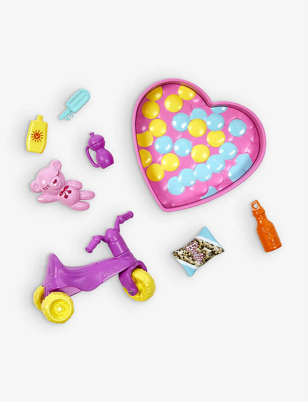 - Includes: 2x Dolls, 1x Slide, 1x Swing, 1x Ball pit, 1x Tricycle, 6x Accessory play pieces