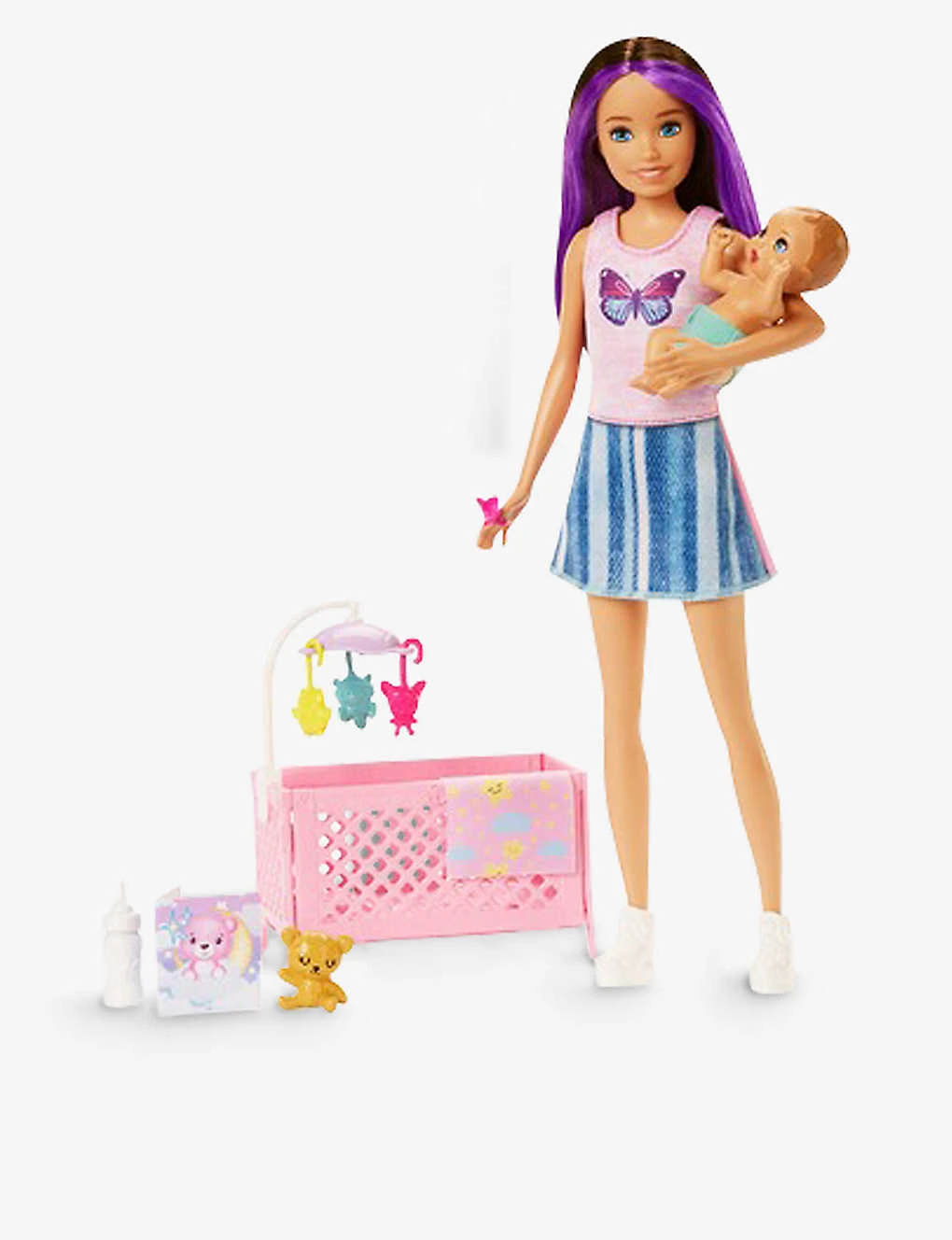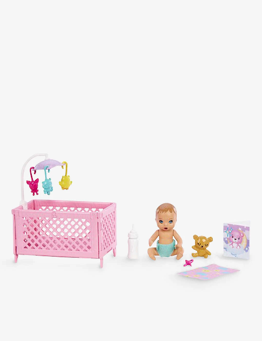 - Includes: Skipper doll, a baby doll with cool action, a crib with mobile and 4 storytelling pieces