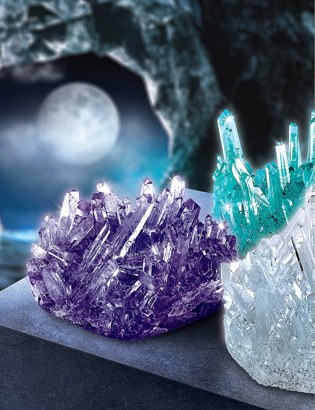 - 12-piece lab set including the solution and moulds, only needs to add water, three colours of crystals