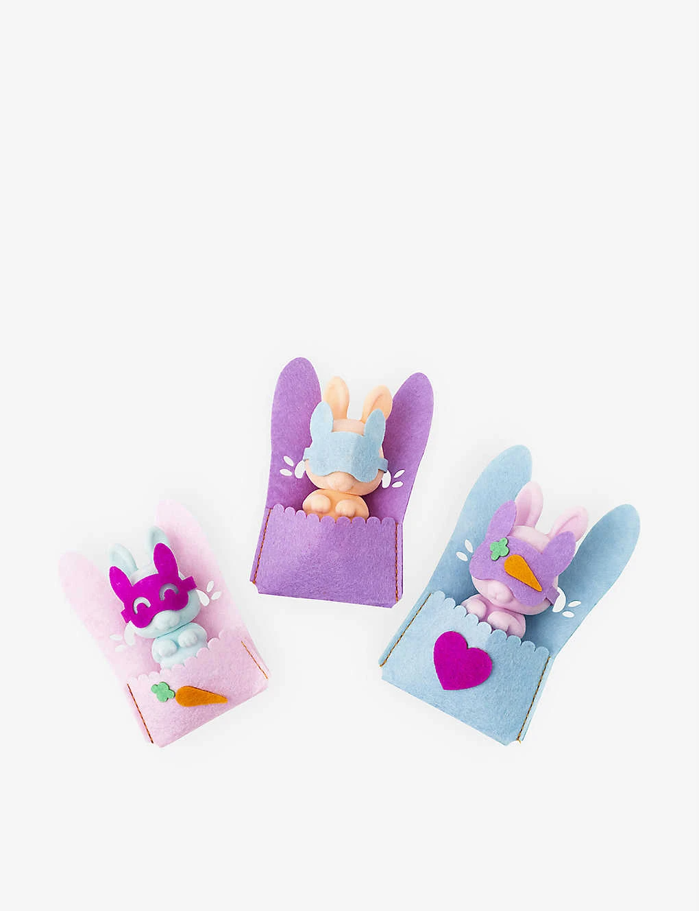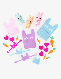 - Includes: 3 rabbit figures, washable felt tip pens, sleeping bags and other accessories to personalise and play with