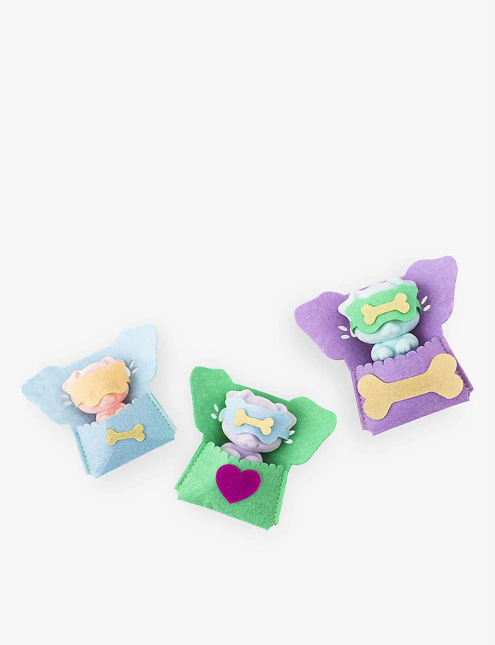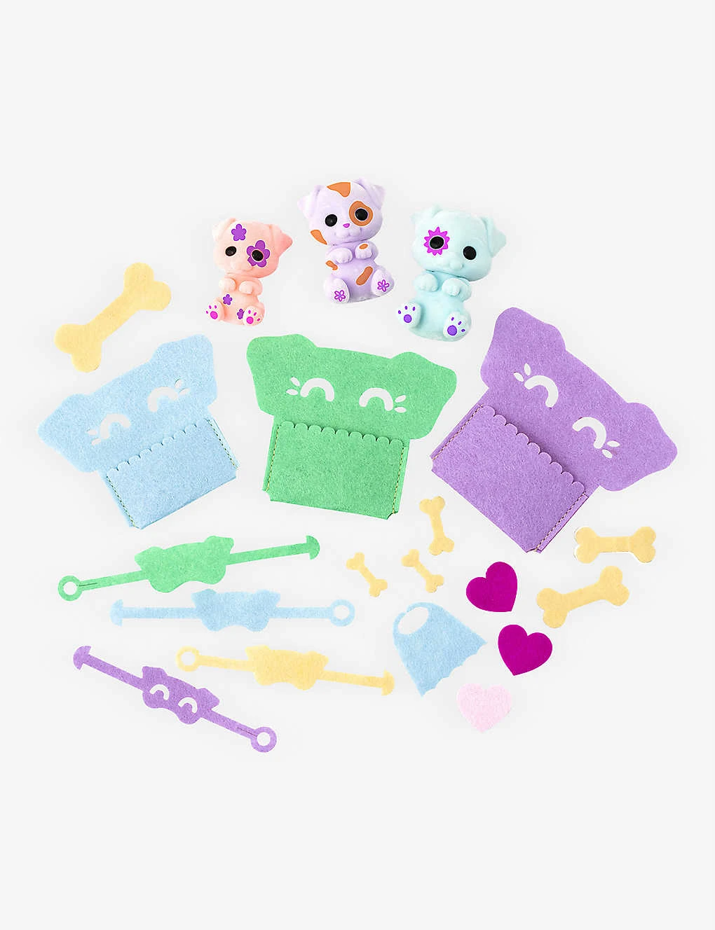 - Includes: 3 x felt tip pens, instructions, 3 x dogs figures, 3 x beds