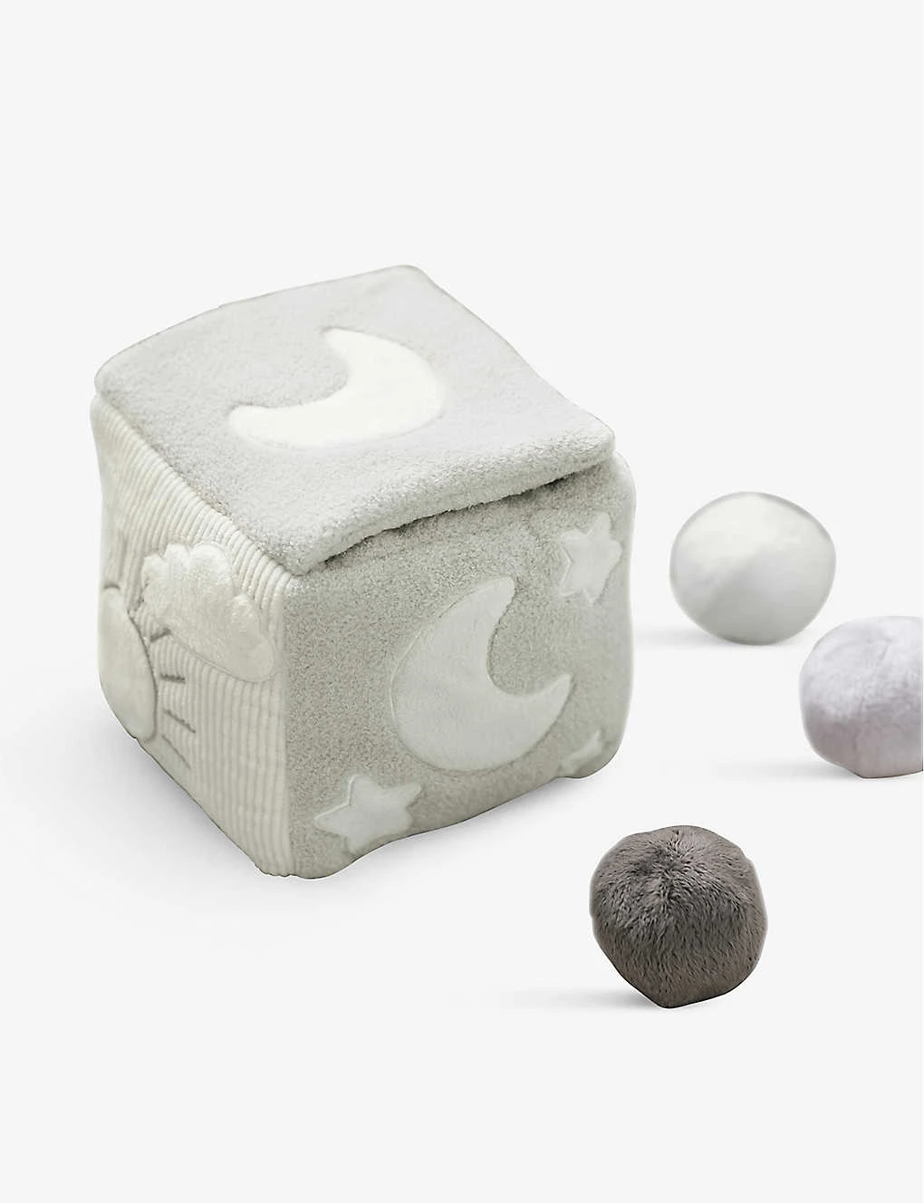 - Soft-touch sensory design, storage for three sound balls, animal characters, moon and star designs all over