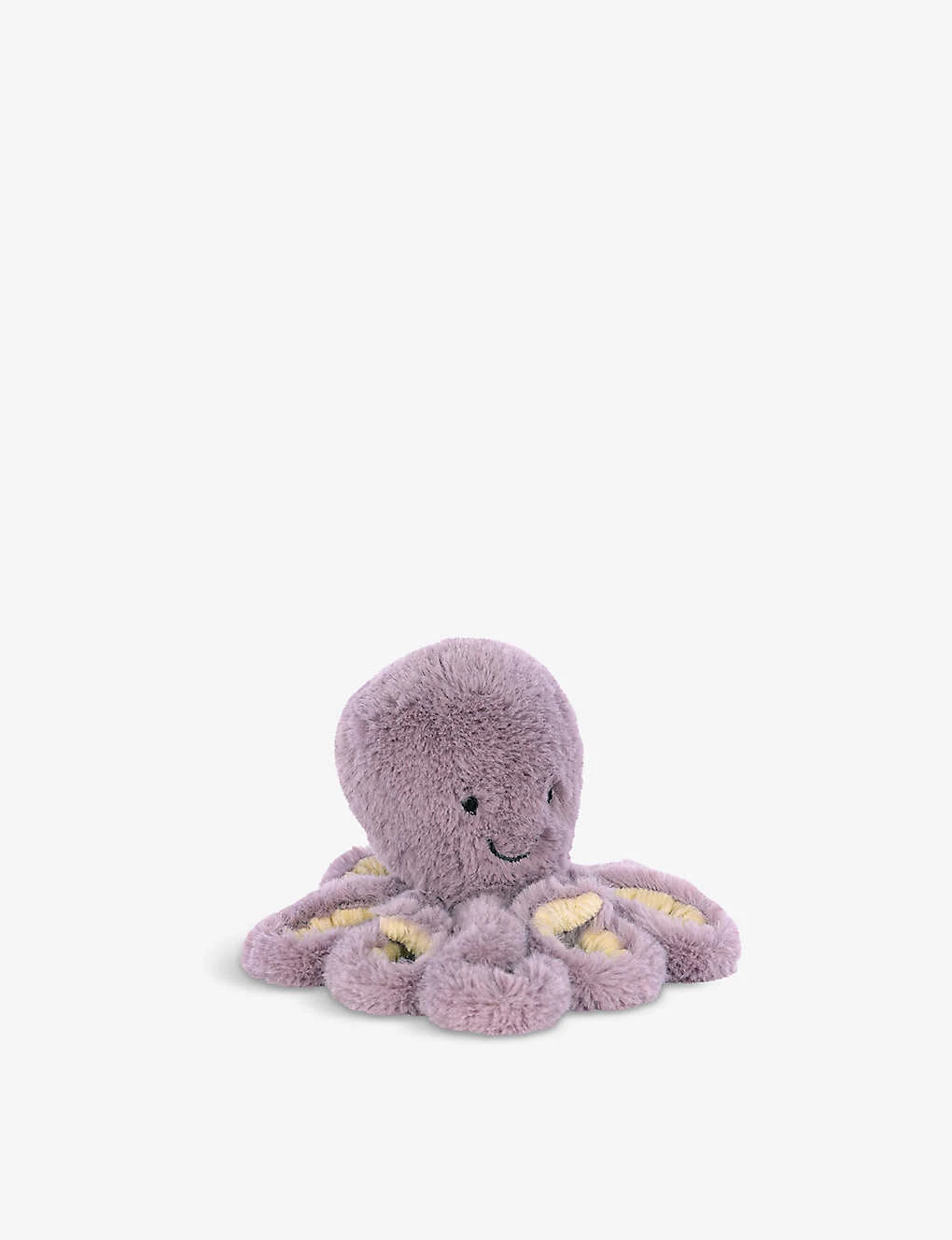 - Octopus shaped, embroidered features, all-over tonal stitching