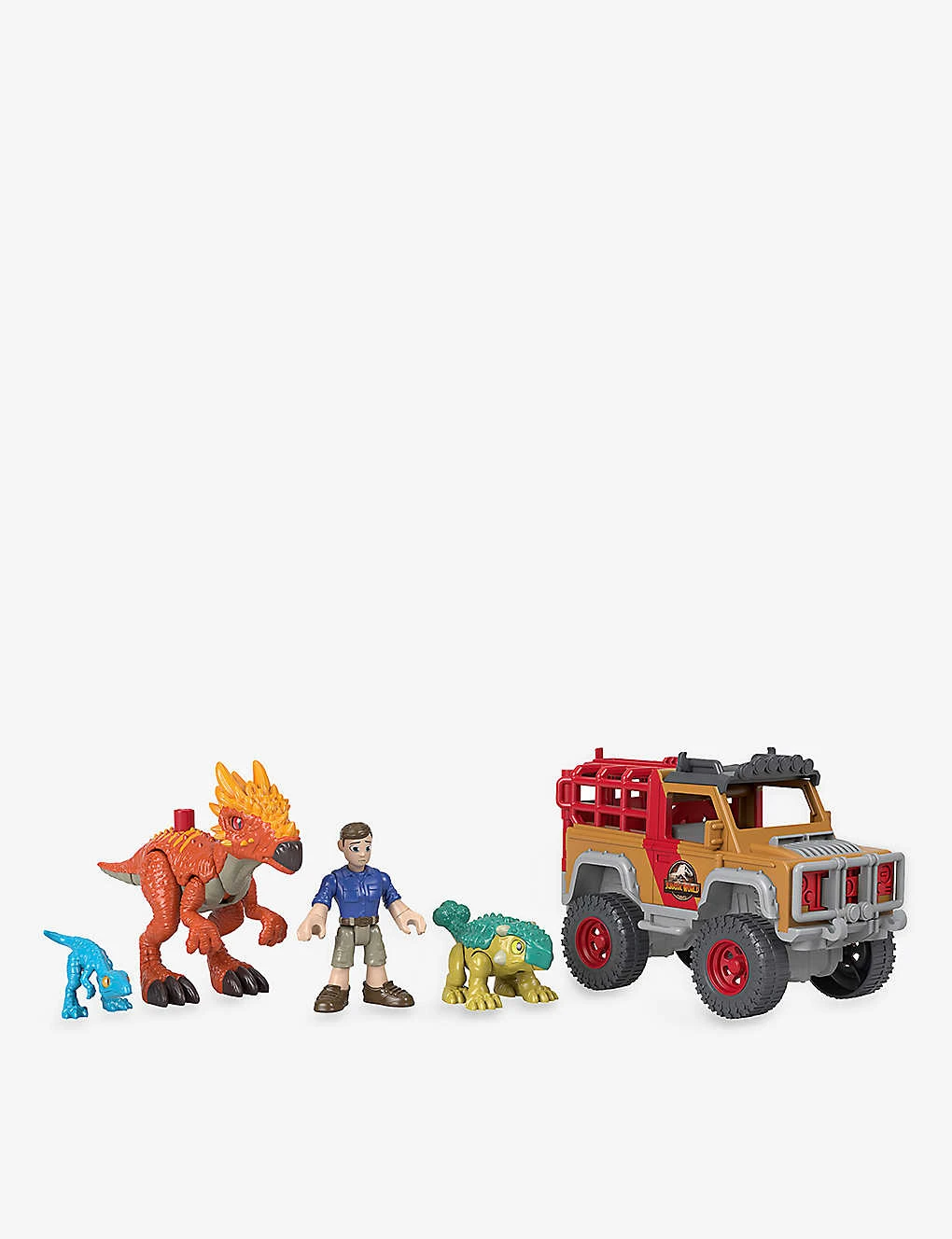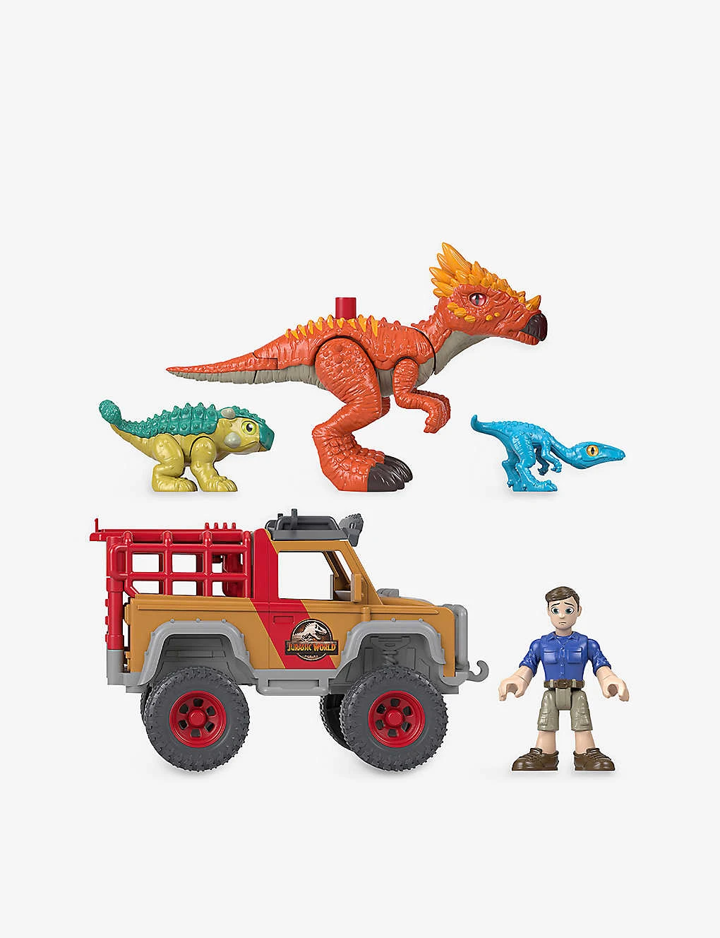 - Includes: 1 x car, 1 x figurine, 3 x dinosaurs
