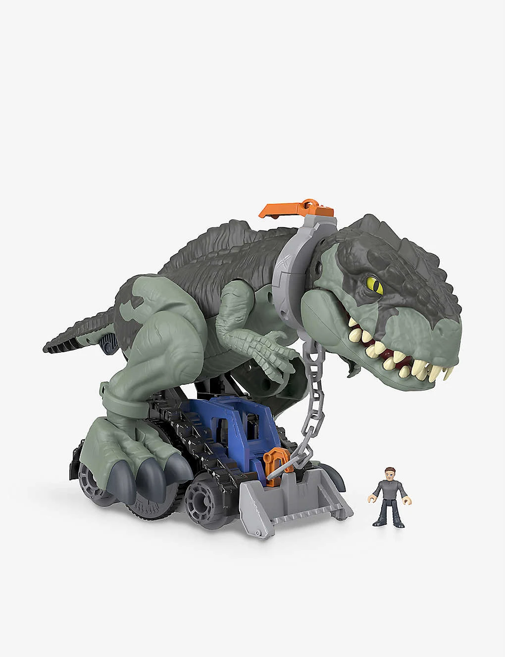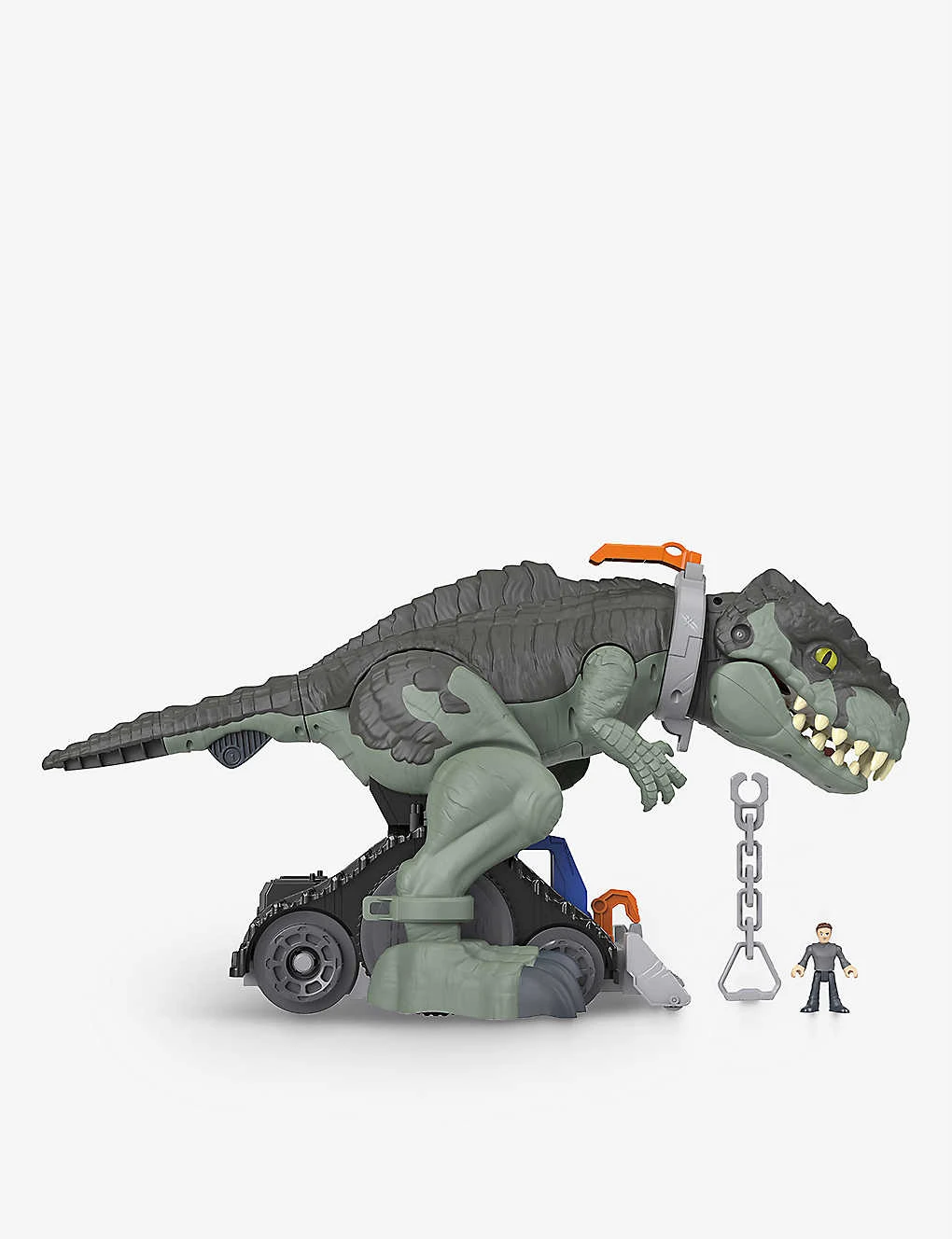 - Moving Giga dinosaur figure with light-up eyes and realistic sounds, Owen figure, breakaway chain