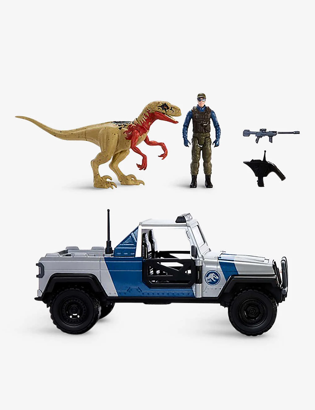 - Includes: one truck, one dinosaur figure, one search figure, two search themed accessories