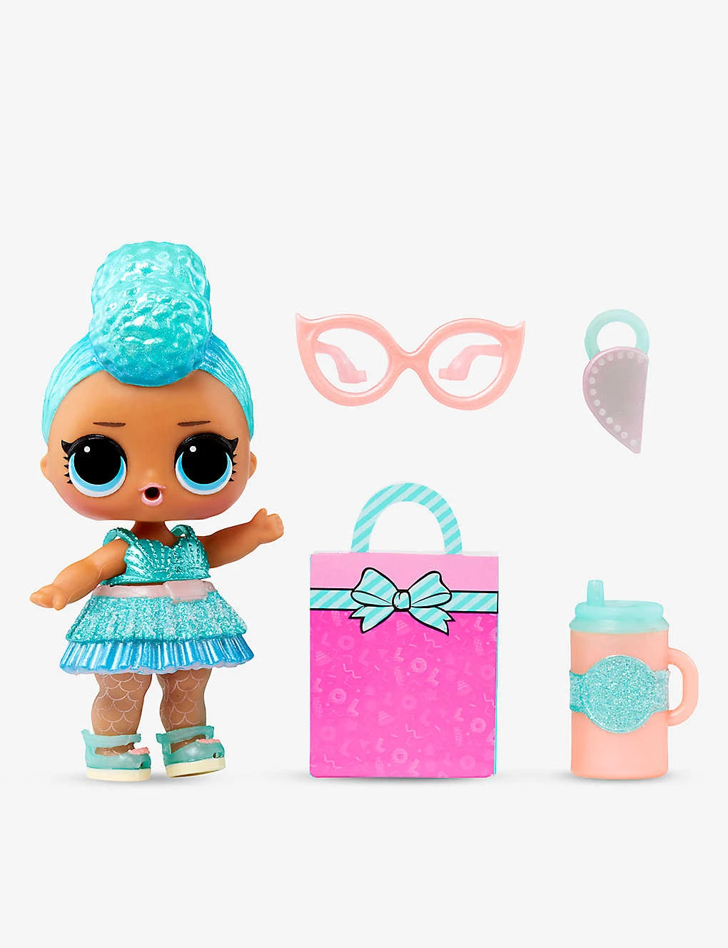 - Includes: 1x doll, 1x outfit, 1x pair of shoes, 1x bottle, 1x accessory, 1x handbag, 1x mini gift bag, 1x confetti