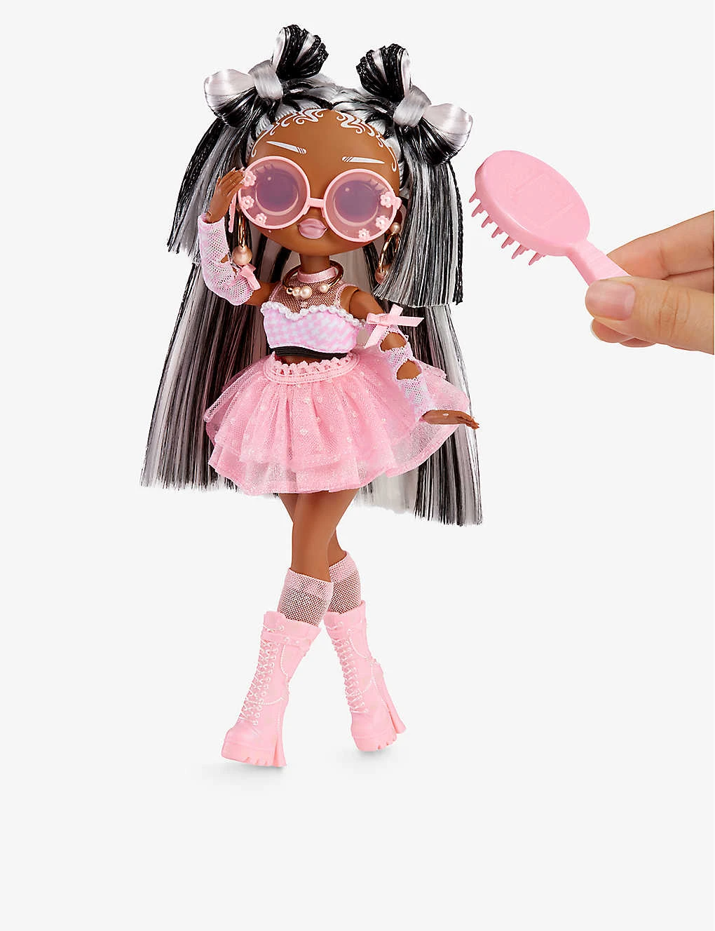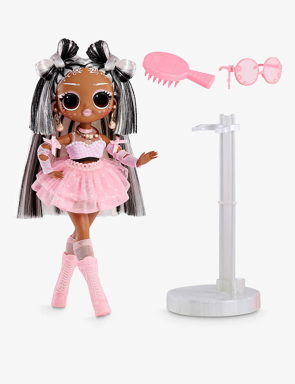 - Includes: 1 x fashion doll, 1 x flower sunglasses, 1 x comb, 1 x outfit, 1 x pair of socks, 1 x pair of boots, 1 x stand