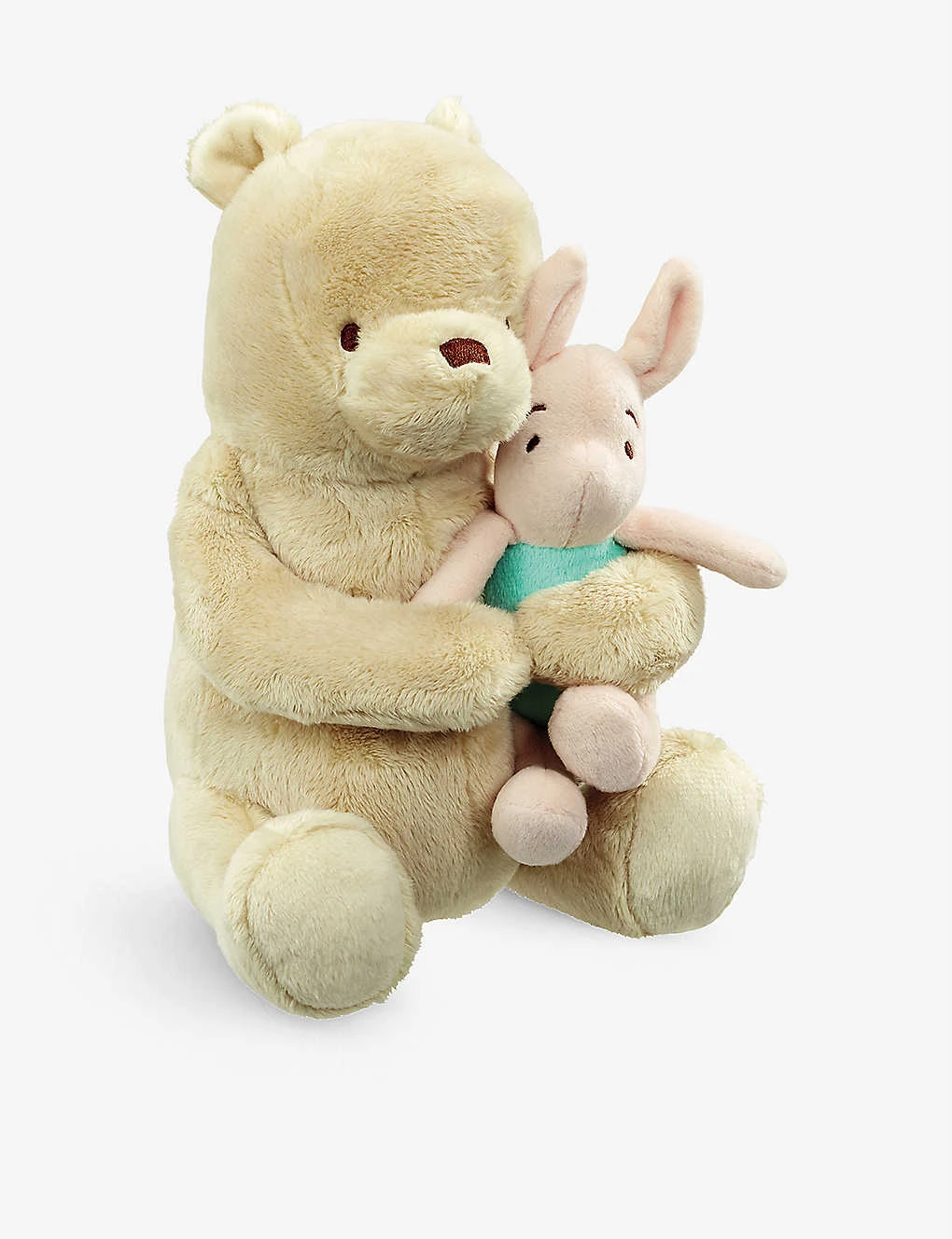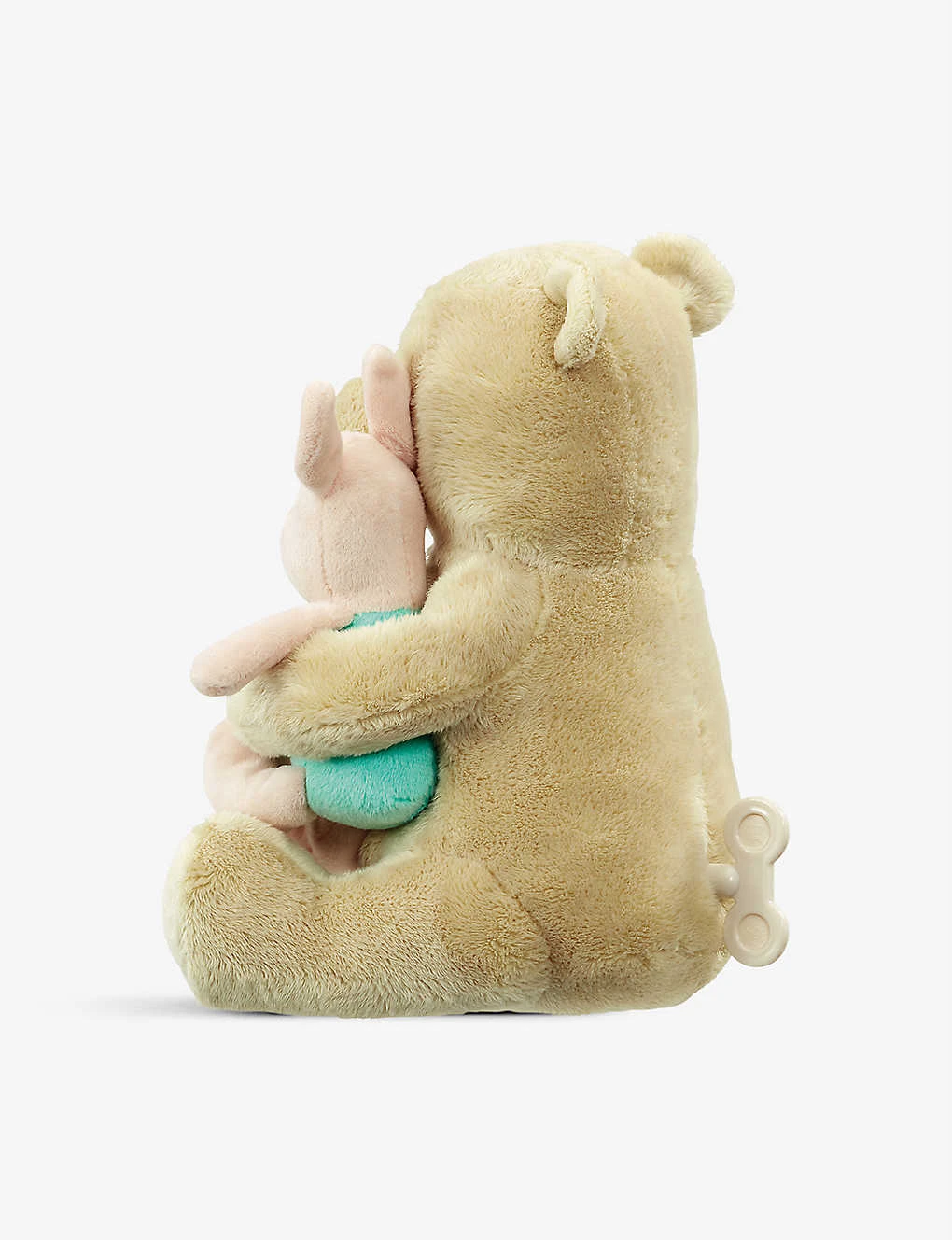 - Winnie the Pooh design, seated position, holding Piglet, musical function when turning key on the back, embroidered faces