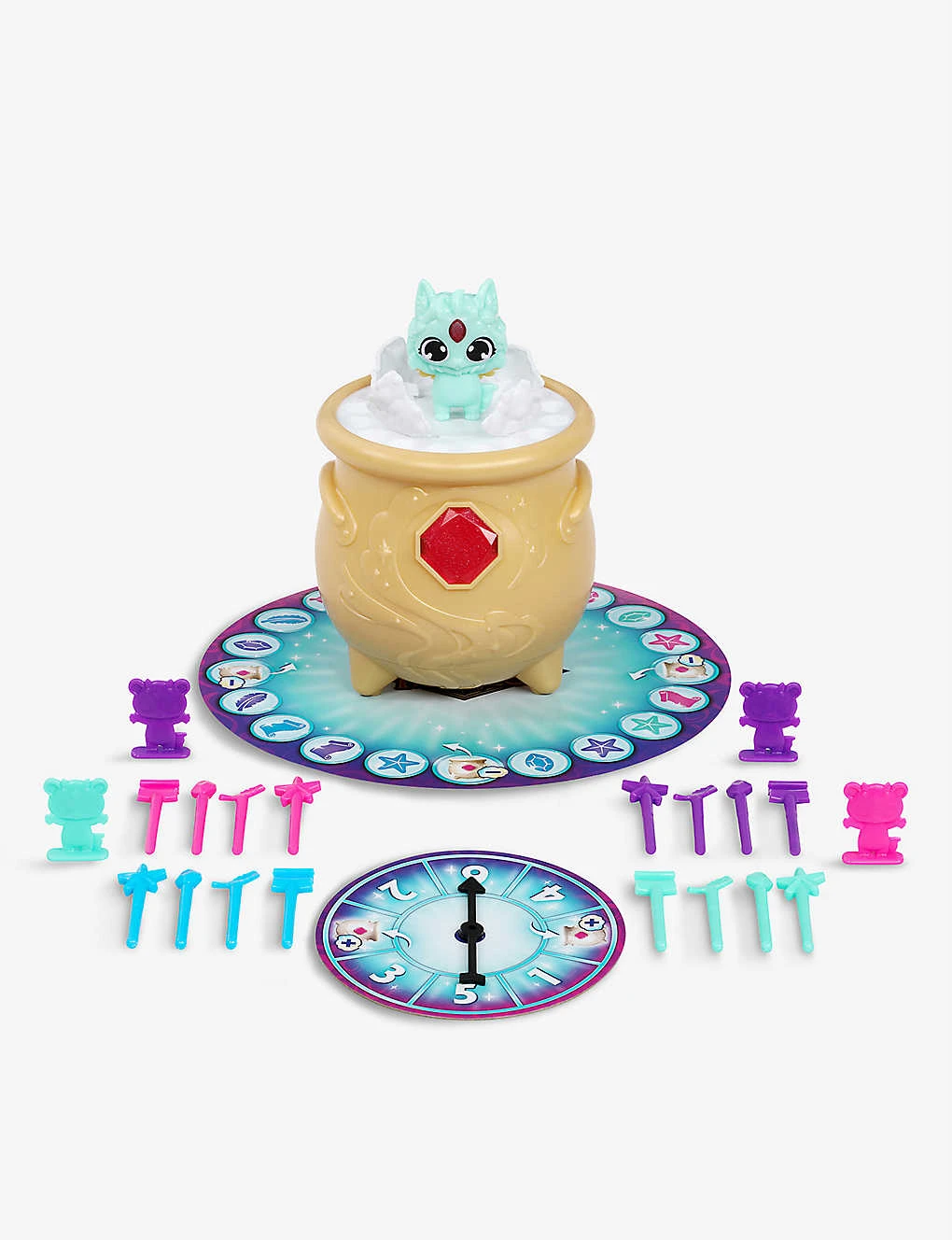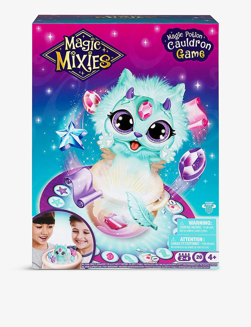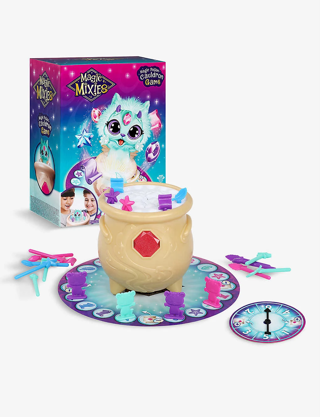- Includes: 1 cauldron with magic mixie, 1 game mat, 1 spinner board, 16 potion ingredients and 4 mixling movers