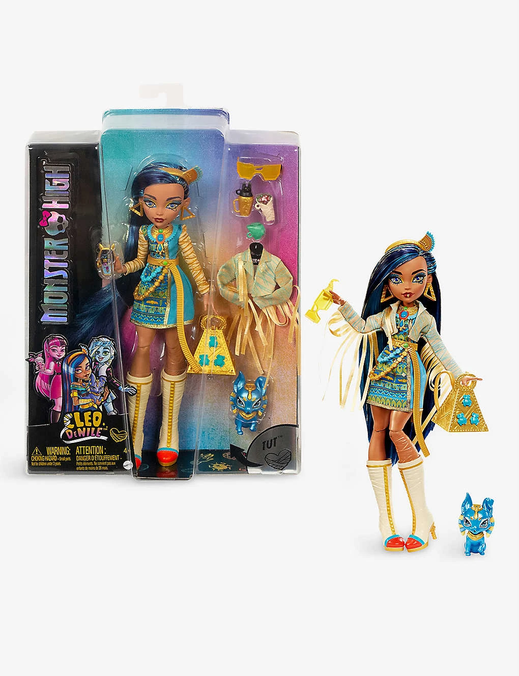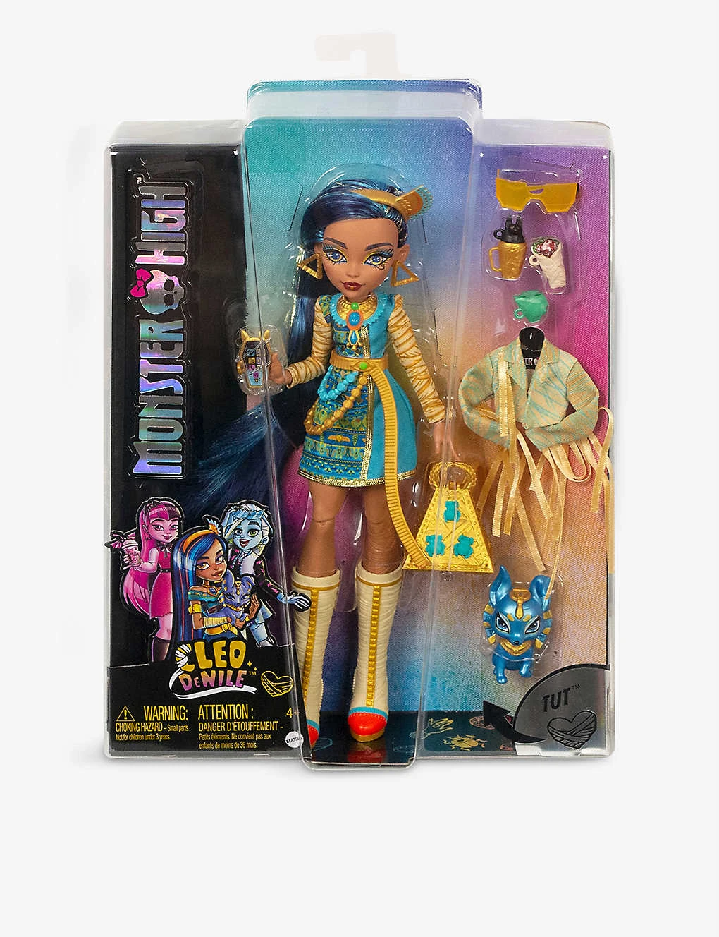 Contents: one Cleo De Nile toy doll, one outfit, one pair of shoes, one pet figure, one backpack, one burrito snack, one beverage, one smartphone toy, one makeup compact, one extra jacket