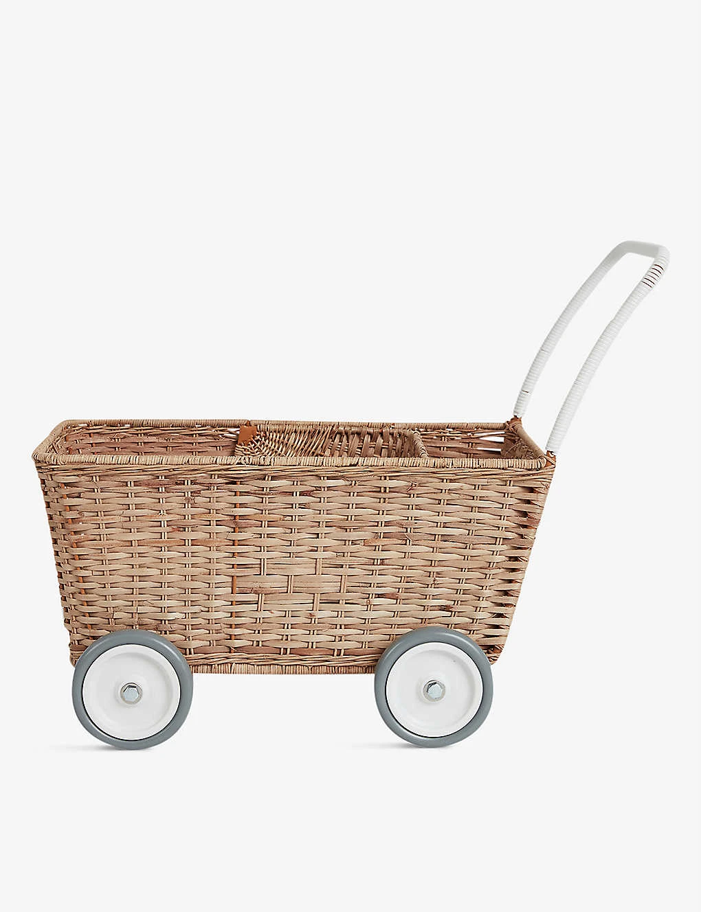 - Dimensions: Height 45cm (with Long Handle 60cm), Width of basket is 27cm (including wheels 34cm), Length 60cm