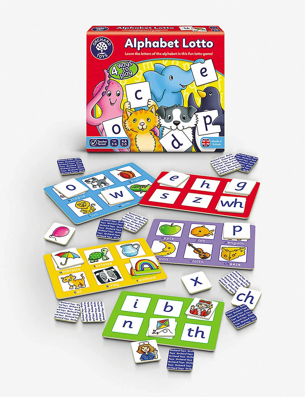 Includes: five lotto boards, 30 picture cards, 30 letter cards, instruction leaflet