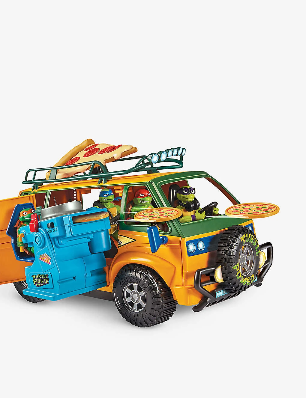 - Opens from the front and the back, side door swings open, pizza launcher slides out the side, motorised launcher, decorated features