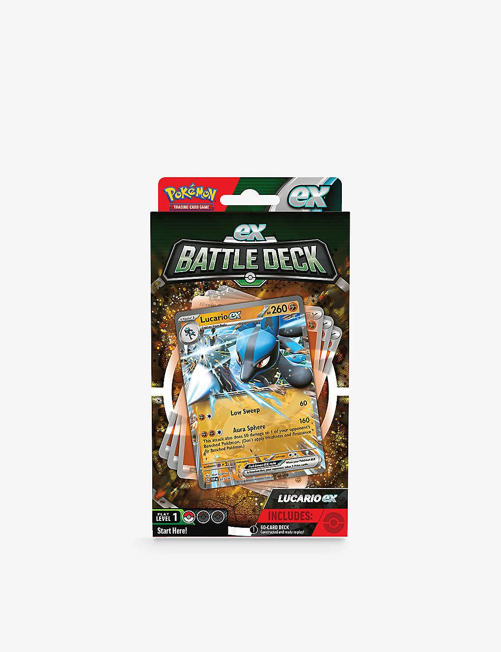 - Includes: 1 x 60 card deck, 3 x reference cards, 1 x rules booklet, 1 x single-player playmat, 1 x set of damage counters, 1 x large metallic coin, 1 x deck box, 1 x strategy sheet