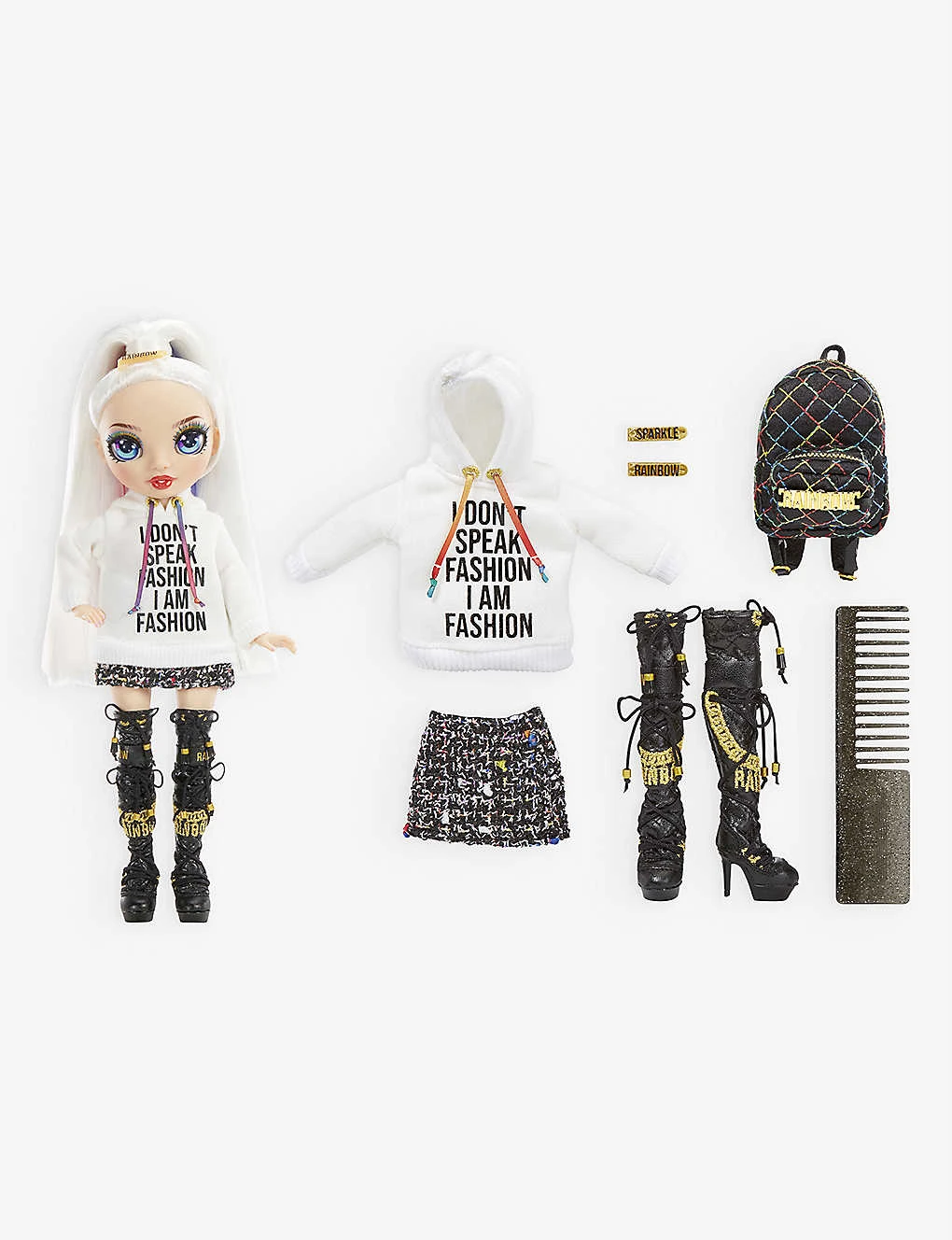 - Includes 1x fashion doll, 1x doll outfit, 1x pair of doll shoes, 1x pair of socks, 1x backpack, 1x hairbow and 1x doll comb