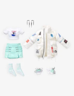 - Includes: x1 doll with stand, x1 outfit, x1 doll shoes, x1 laptop, x1 cell phone and case, x1 thermos