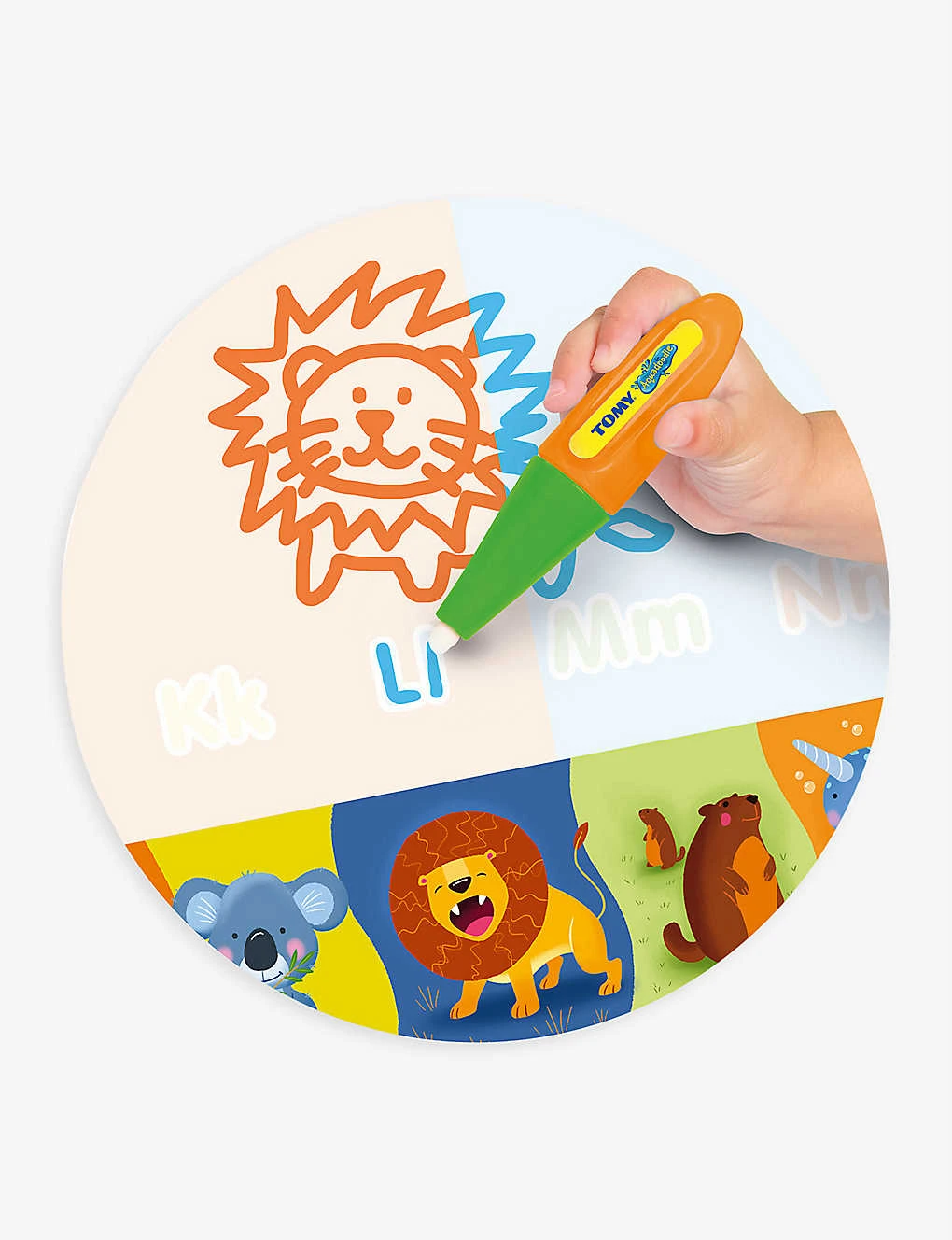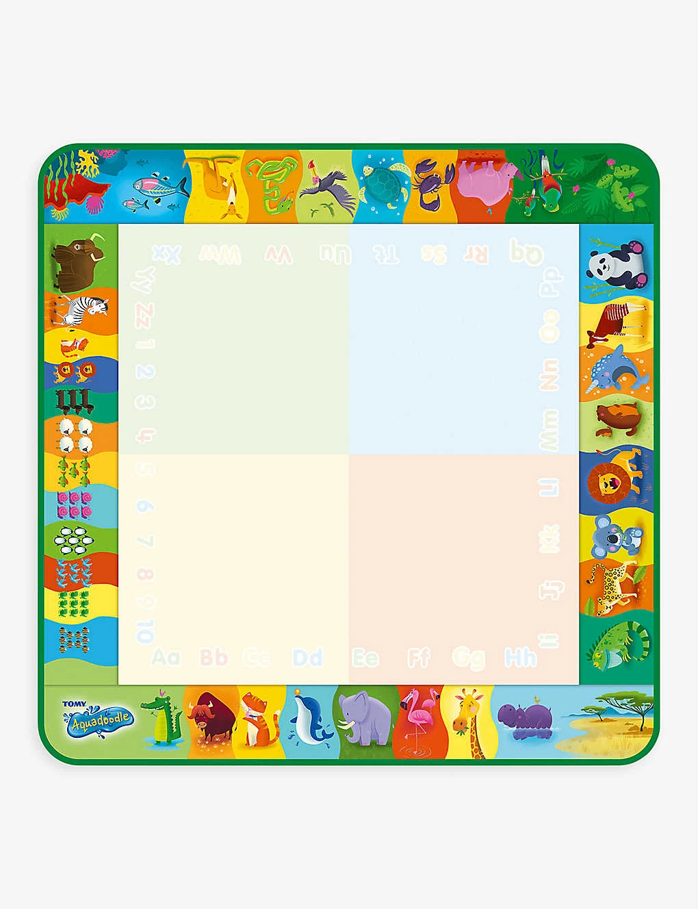 - Checked pattern, water doodle function, animal pictures along the edges, the alphabet and numbers along the edges