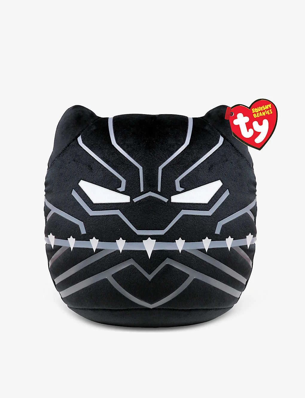 - Black Panther themed, round shape, all-over decorative features at front, squashable design